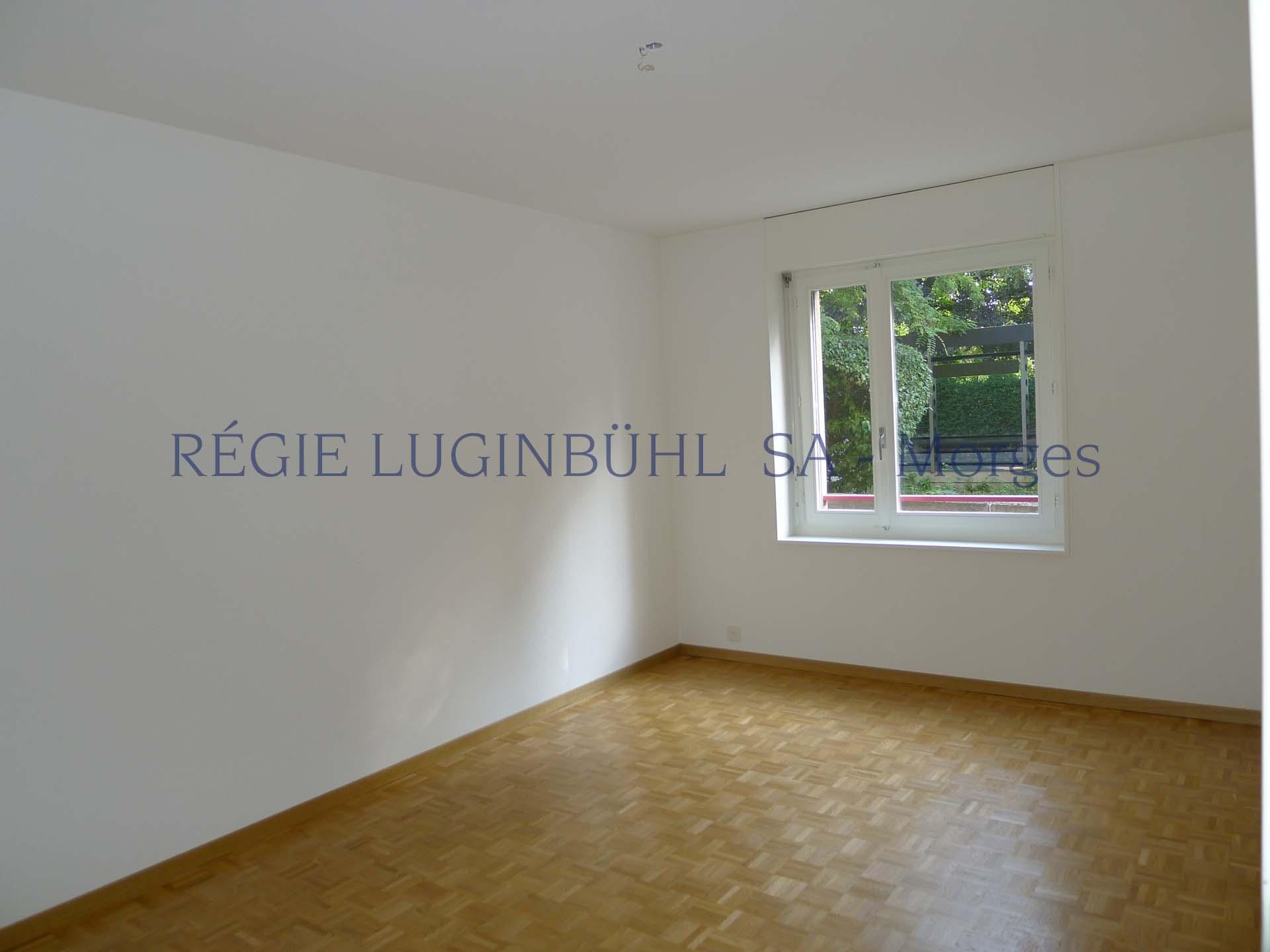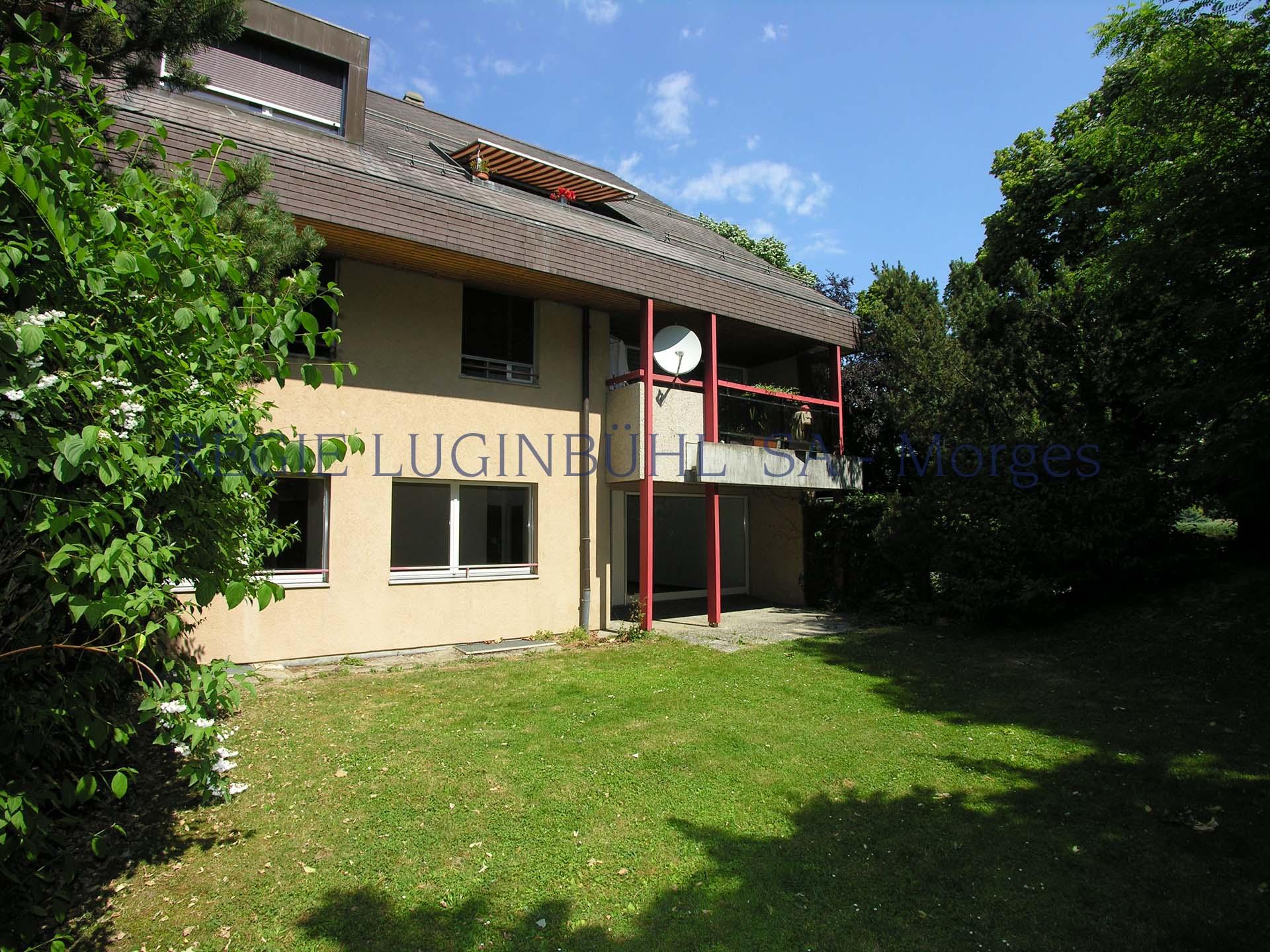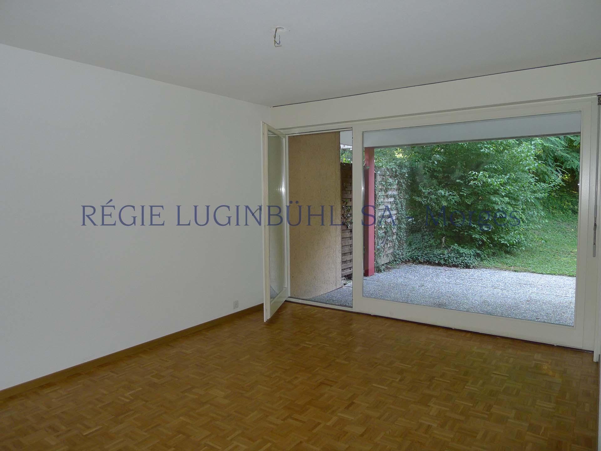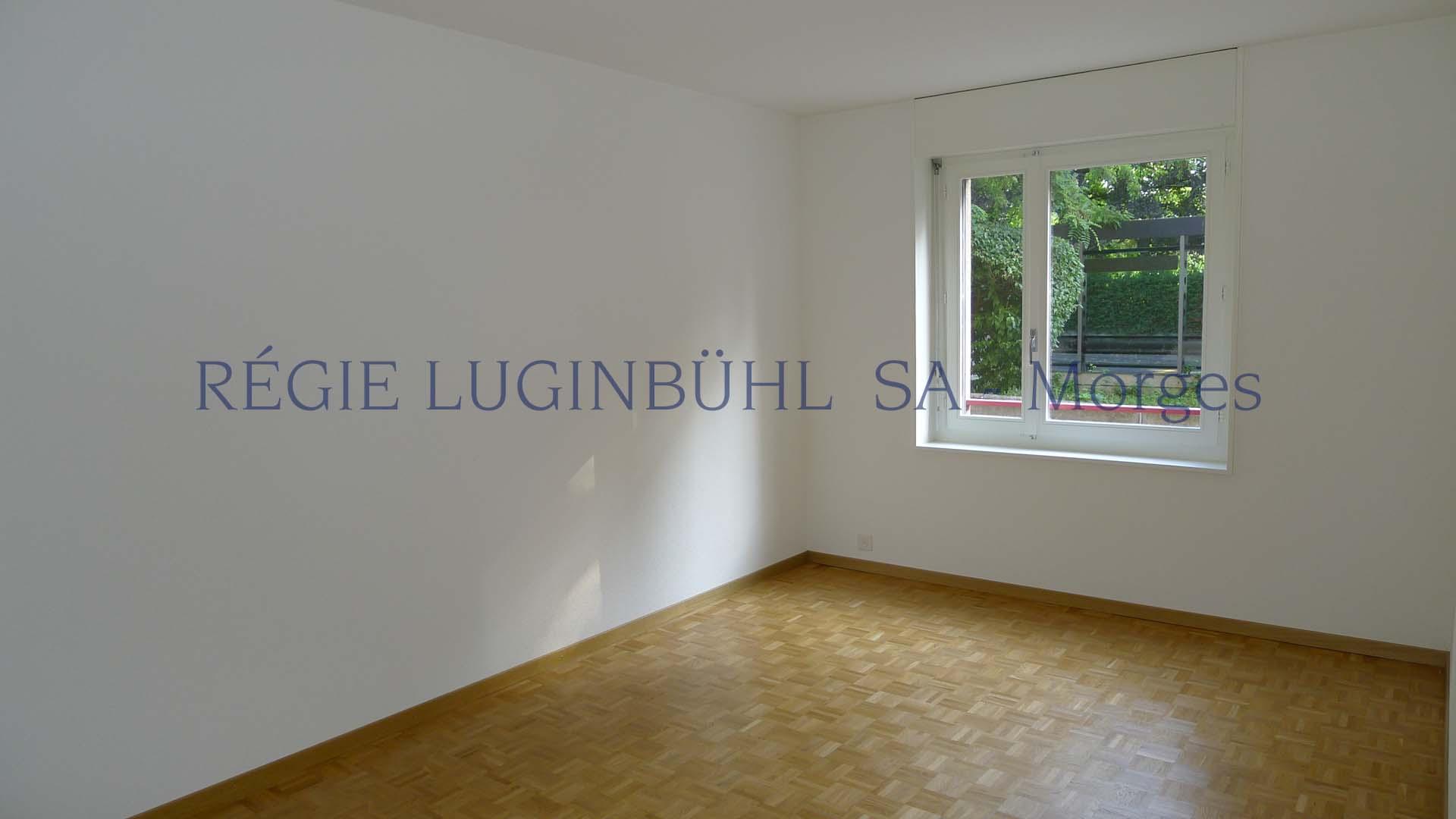 Appartement de 3.5 pièces au rez-de-chausseé d'env. 75m2, bien situé, proche du centre de Morges (arrêt de bus à 150 mètres, gare à 900 mètres) et de l'entrée/sortie d'autoroute comprenant :