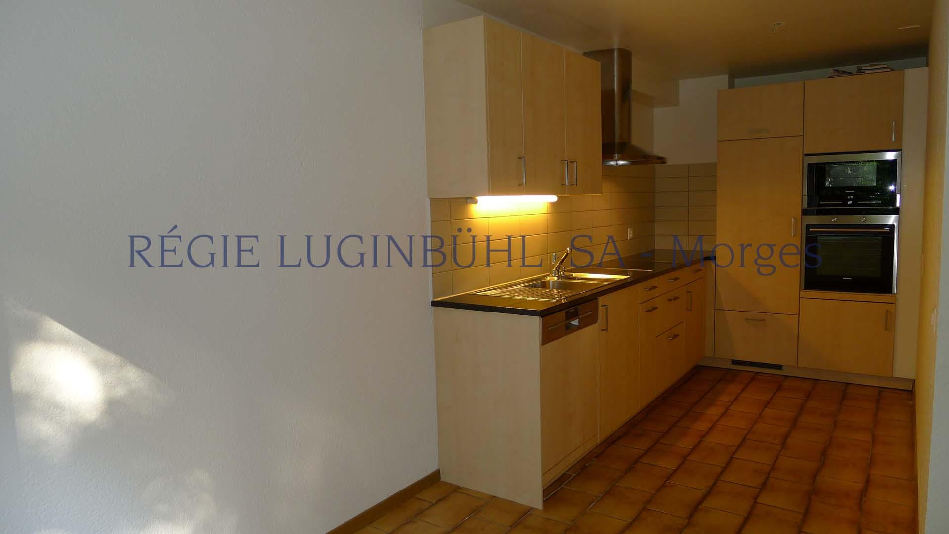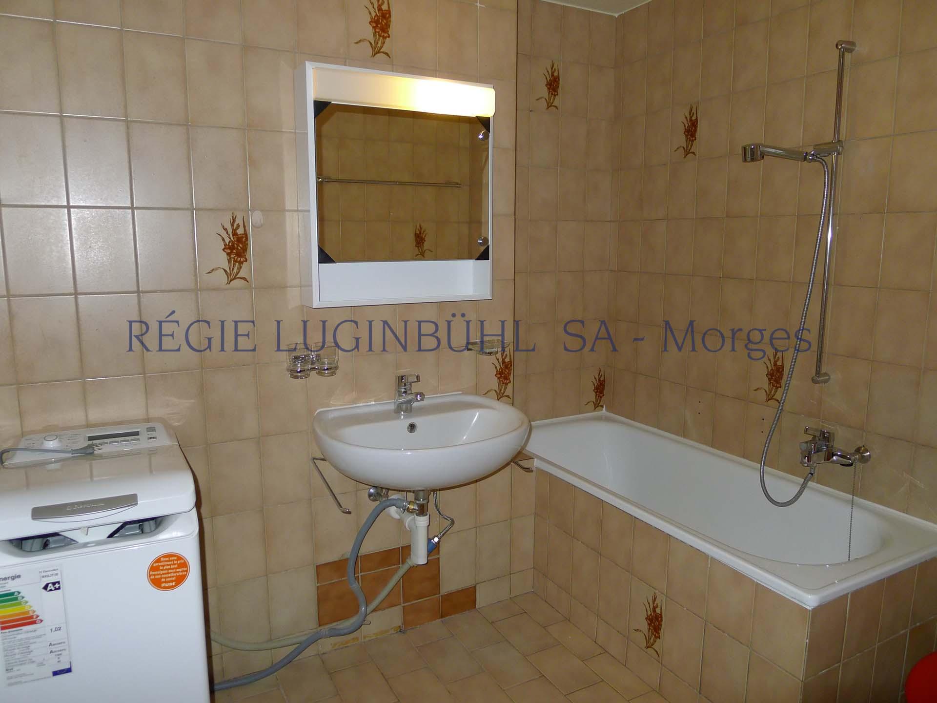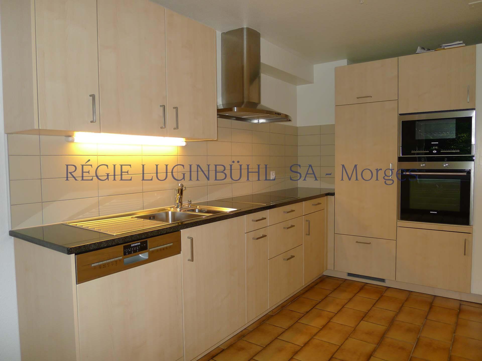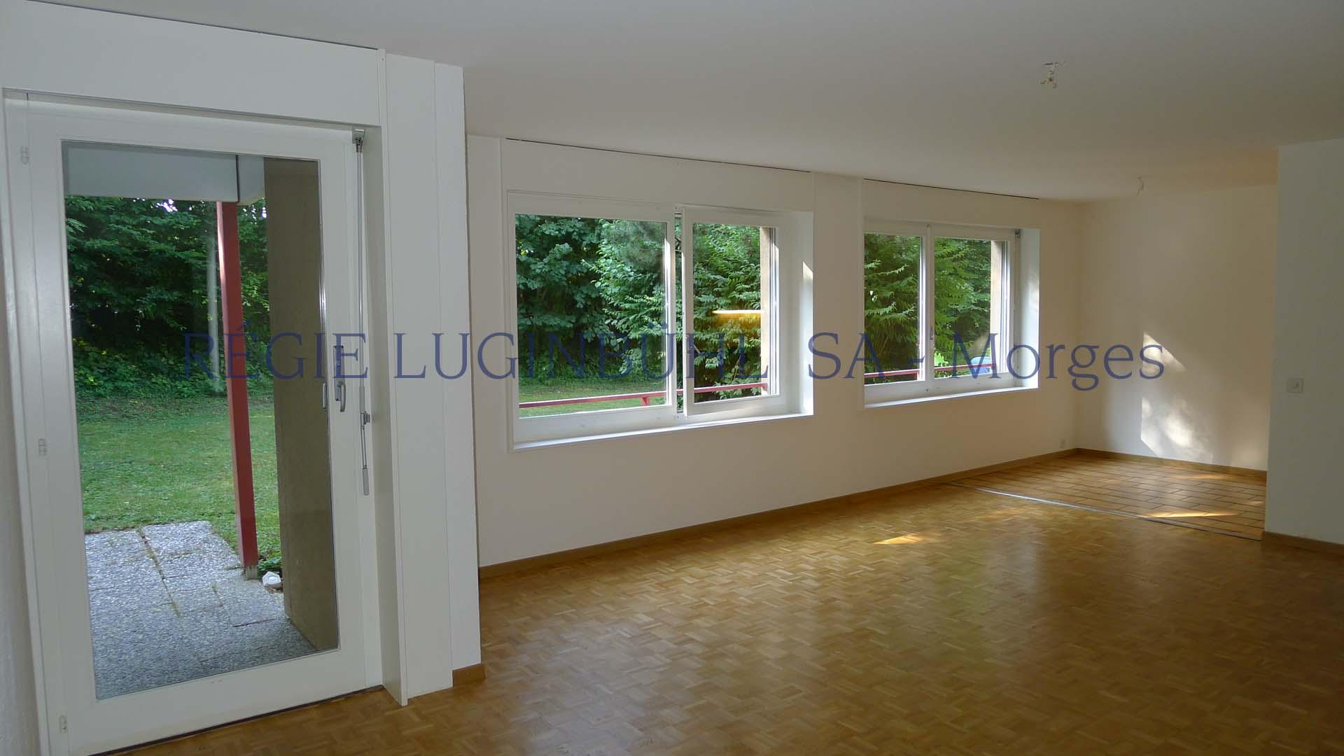 Appartement de 3.5 pièces au rez-de-chausseé d'env. 75m2, bien situé, proche du centre de Morges (arrêt de bus à 150 mètres, gare à 900 mètres) et de l'entrée/sortie d'autoroute comprenant :